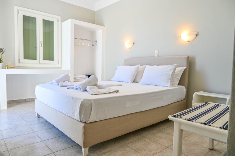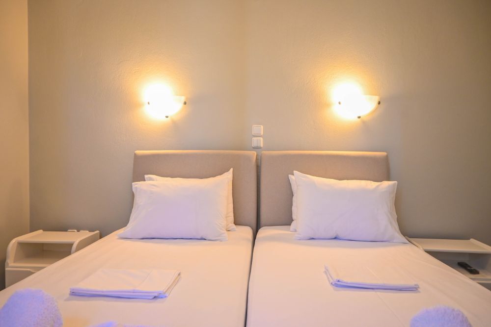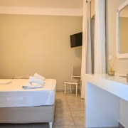 Our Double Bedroom is great for couples or groups of friends. It consists of 1 king size bed or 2 single beds and an ensuite bathroom, and it offers an all-encompassing view of the sea and nature. The room comes with modern facilities, including a TV, towels, slippers, free Wi-Fi access, and complimentary toiletries.