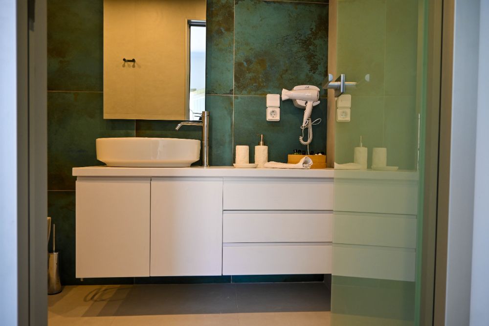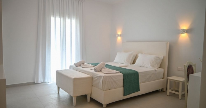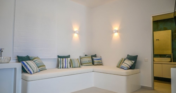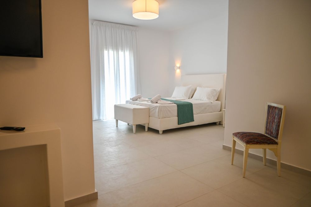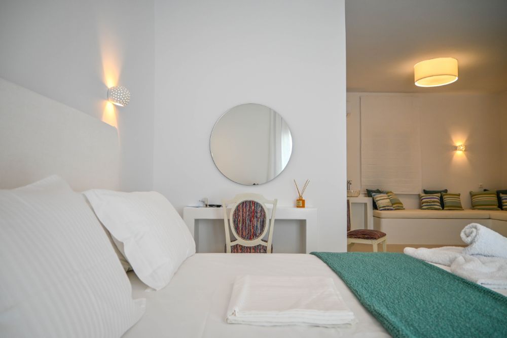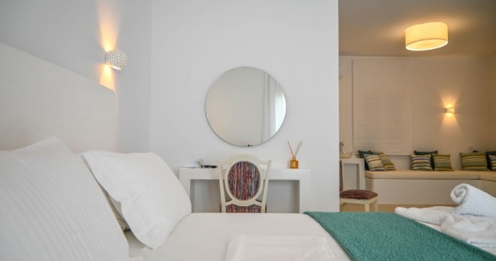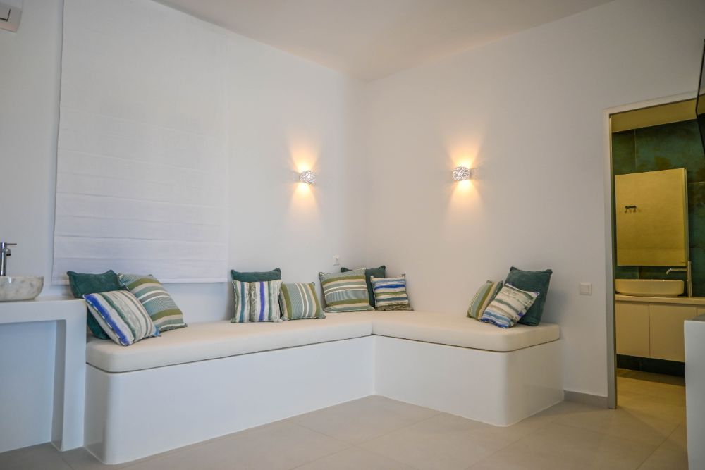 Our Suite is great for couples or groups of friends. It consists of 1 king size bed, 2 sofas and an ensuite bathroom, and it offers an all-encompassing view of the sea and nature. The room comes with modern facilities, including a TV, towels, slippers, free Wi-Fi access, and complimentary toiletries.